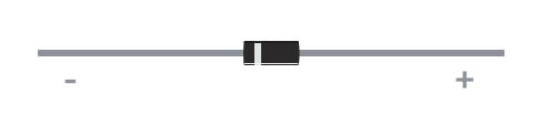 Ensures electricity only flows in one di- rection. Useful when you have a motor or other high current/voltage load in your circuit. Di- odes are polarized, meaning that the direction that they’re placed in a circuit matters. Placed one way, they allow current to pass through. Placed the other way, they block it. The anode side generally connects to the point of higher energy in your circuit. The cathode typically connects to the point of lower energy, or to ground. The cathode is usually marked with a band on one side of the component’s body.
