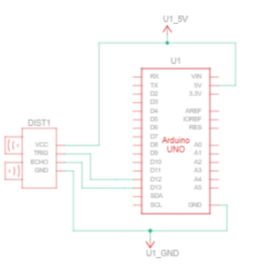 The ultrasonic sensor is a device that measures distance by using sound waves beyond the human hearing range (greater than 20 kHz). It has two main components: a transmitter, which sends out a short burst of ultrasonic sound, and a receiver, which listens for the echo when that sound bounces back from an object. When the transmitter emits the pulse, it travels through the air until it hits an obstacle and reflects back toward the sensor. The receiver detects this returning echo, and the Arduino uses its internal clock to measure how much time passed between sending the pulse and receiving the echo. This time measurement is then stored in a variable and, using simple physics, converted into distance. Since the sound wave travels to the object and back, the measured time corresponds to twice the actual distance, so the final distance is calculated using the formula: